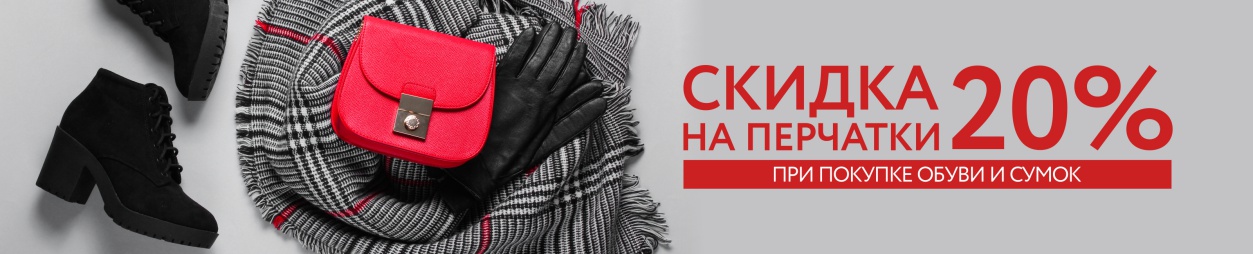 Уже определились с выбором обуви и сумочки? Не забудьте подобрать к ним пару перчаток, ведь сейчас это подарит вам не только непревзойденный шарм, но и ощутимую выгоду! При совместной покупке с обувью или сумкой в одном чеке, на ассортимент перчаток предоставляется СКИДКА 20%. Не упустите шанс сделать свой образ теплее и завершеннее по согревающей цене!