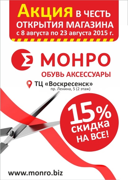 8 августа 2015 года в ТЦ «Воскресенск», открылся новый второй по счету в городе магазин МОНРО.