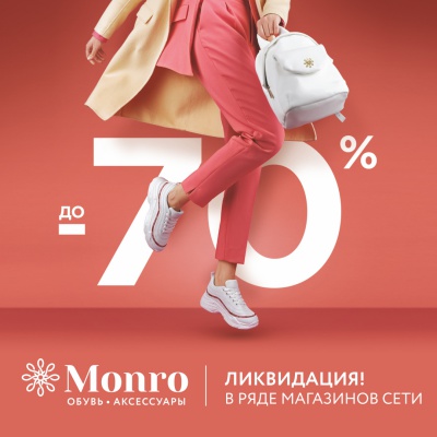 В ряде магазинов обувной сети МОНРО стартовала акция "Ликвидация"! Насладиться великолепной обувью к новому сезону теперь можно со скидкой 70%! Успейте сделать выгодные приобретения и украсить свой внешний вид экономной, но эффектной обувью!