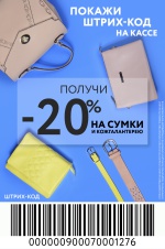 ПОКАЖИ штрих-код на кассе – ПОЛУЧИ скидку 20 % на СУМКИ и кожгалантерею!