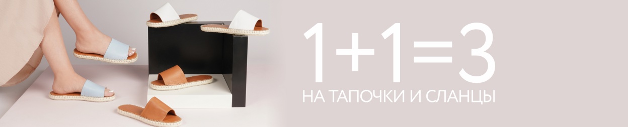 Условия акции: при покупке в одном чеке трёх товаров из ассортимента тапочек и сланцев, на третий товар с наименьшей стоимостью предоставляется скидка 100%. Скидка по акции не суммируется со скидкой по карте покупателя. Акция действует только на товары, не участвующие в других спецпредложениях.