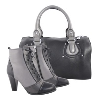 | Новое прочтение классики. Удивительно, как броско и нетривиально может выглядеть комбинация серого и черного! Обратите внимание на сумку — объемную и одновременно компактную. | Высокие сапоги с оригинальной декоративной шнуровкой прекрасно дополнит сумка, также сочетающая в себе кофейный и насыщенный черный цвет. |