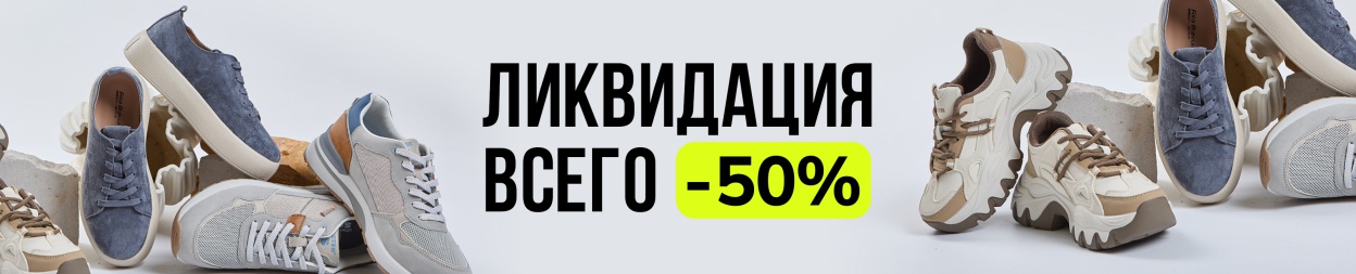 Условия акции: с 10.04.2026 г. по 08.05.2026 г. на весь ассортимент обуви предоставляется скидка -50%. На товары, приобретенные по акции, может быть предоставлена рассрочка. Товары по акции невозможно приобрести по сертификатам и промокодам с определенным номиналом. Подробности у консультантов.