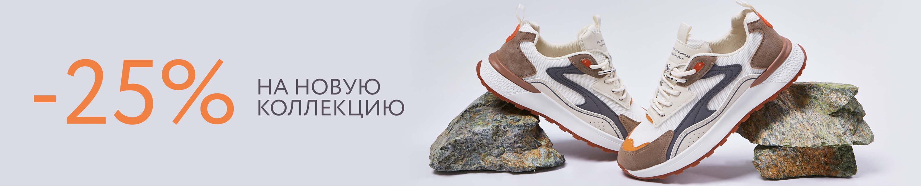 Условия акции:на весь ассортимент новой коллекции мужских и женских кроссовок и туфель действует скидка -25%