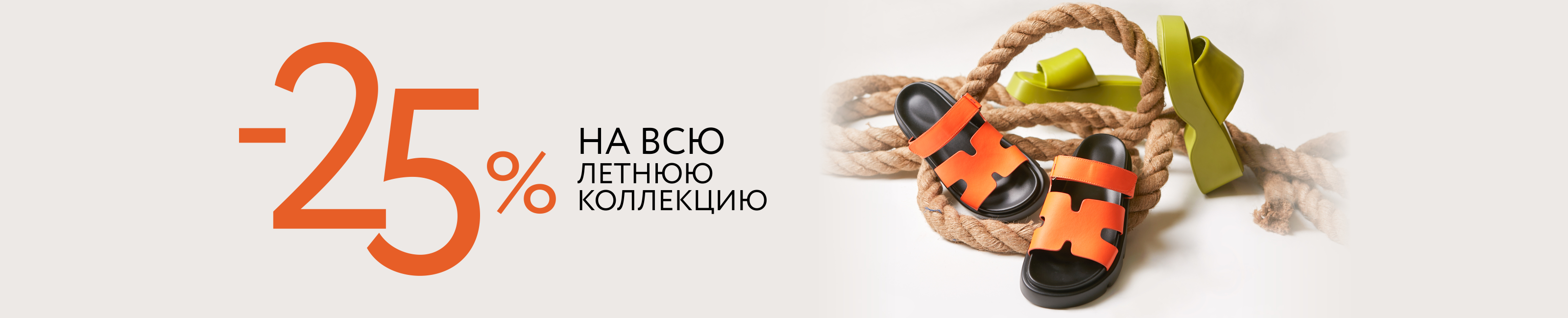 Условия акции: на ассортимент обуви из новой летней коллекции предоставляется скидка -25%. Подробности у консультантов.