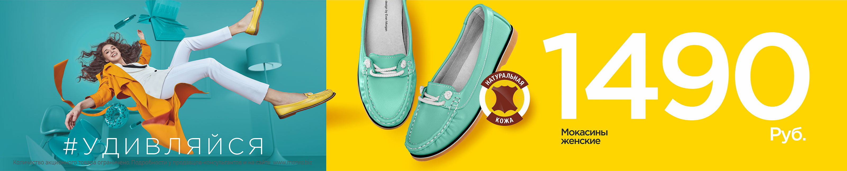 Акция «Женские мокасины из натуральной кожи по 1490 рублей» действует во всех магазинах обувной сети «МОНРО»